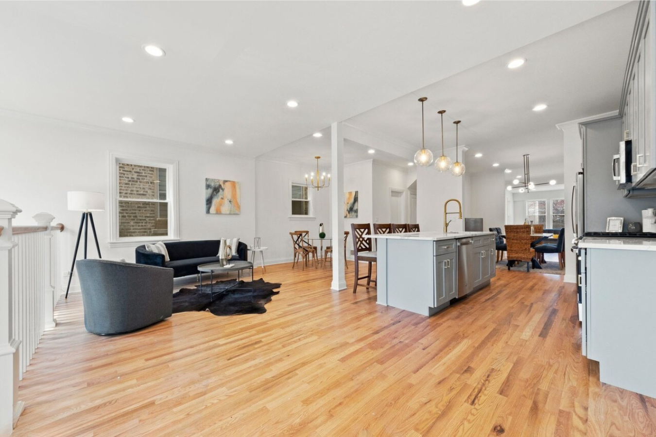 1. Deconversion Complexity: Transforming the property from a two-flat into a cohesive single-family home involved extensive structural changes, including removing old walls and reconfiguring the layout for an open-concept design.