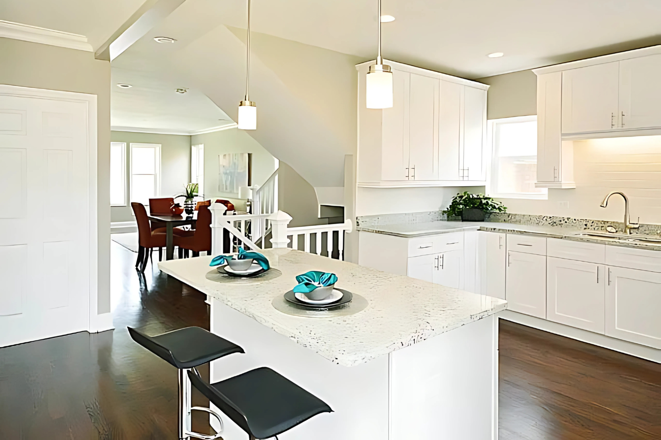 The kitchen became a centerpiece of the design, featuring white shaker cabinets, quartz countertops, and state-of-the-art stainless steel appliances. To enhance the home’s energy efficiency, we installed new windows, insulation, and updated all major systems, including electrical, plumbing, and HVAC. These improvements ensure the home is not only beautiful but also highly functional for everyday living.