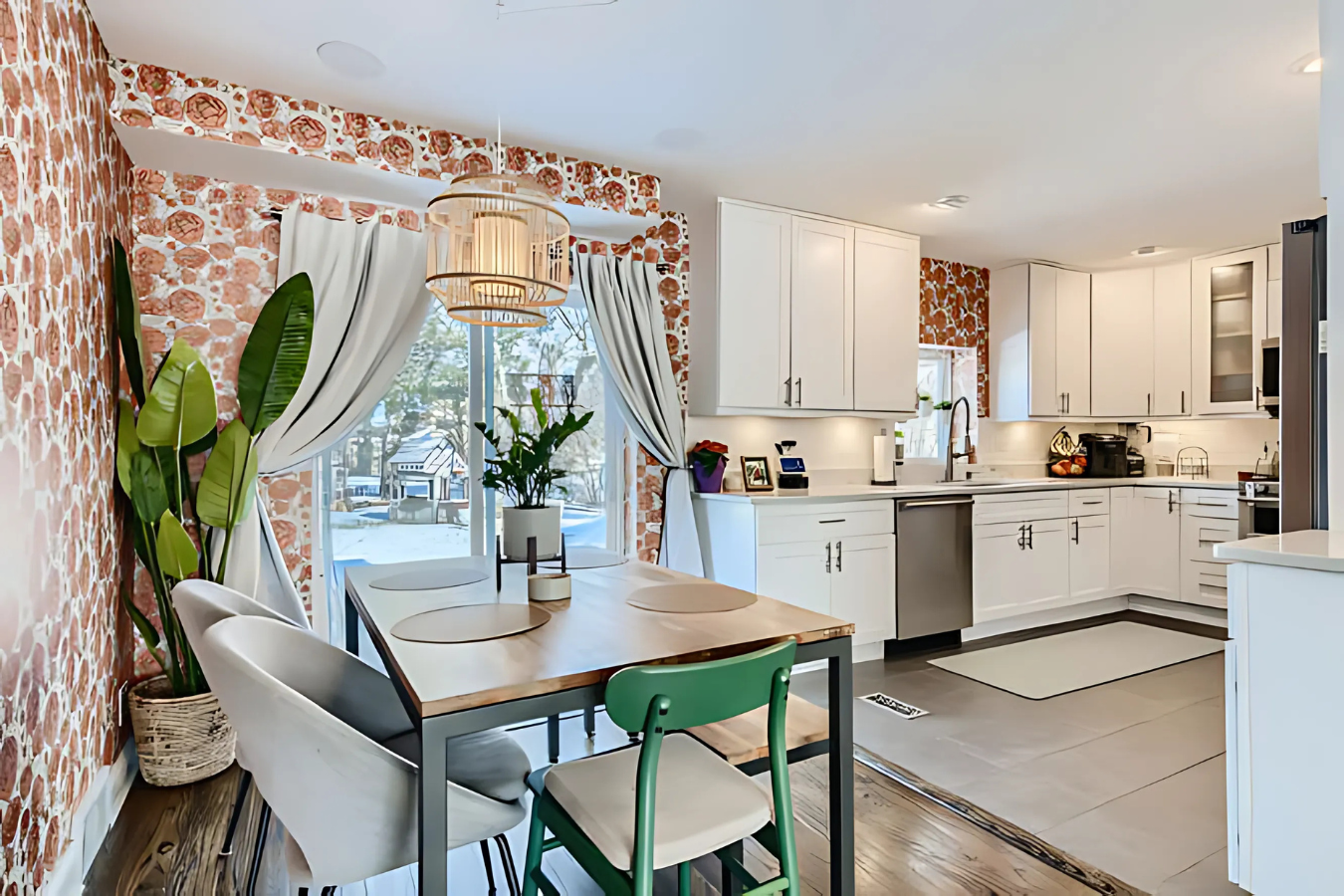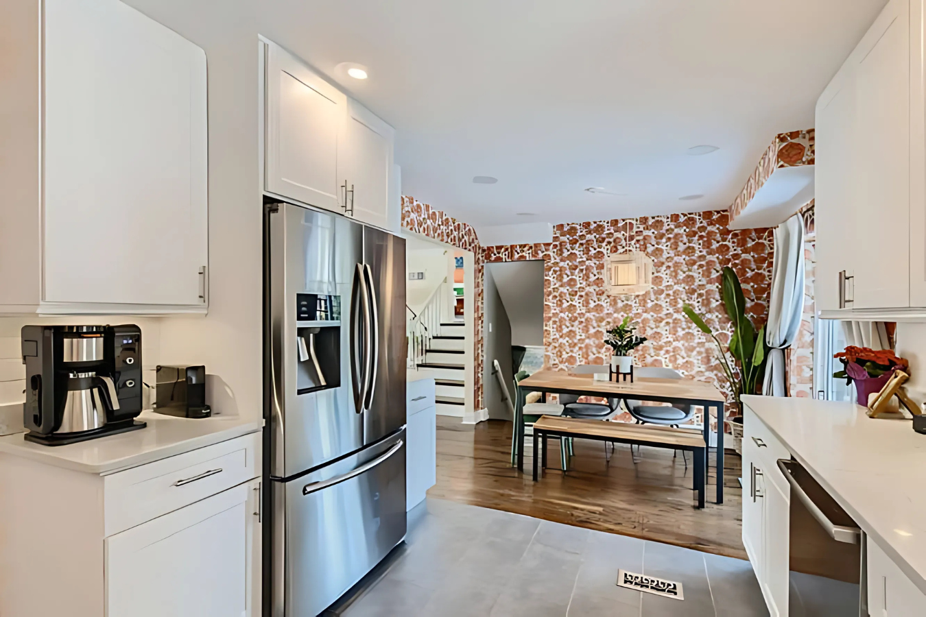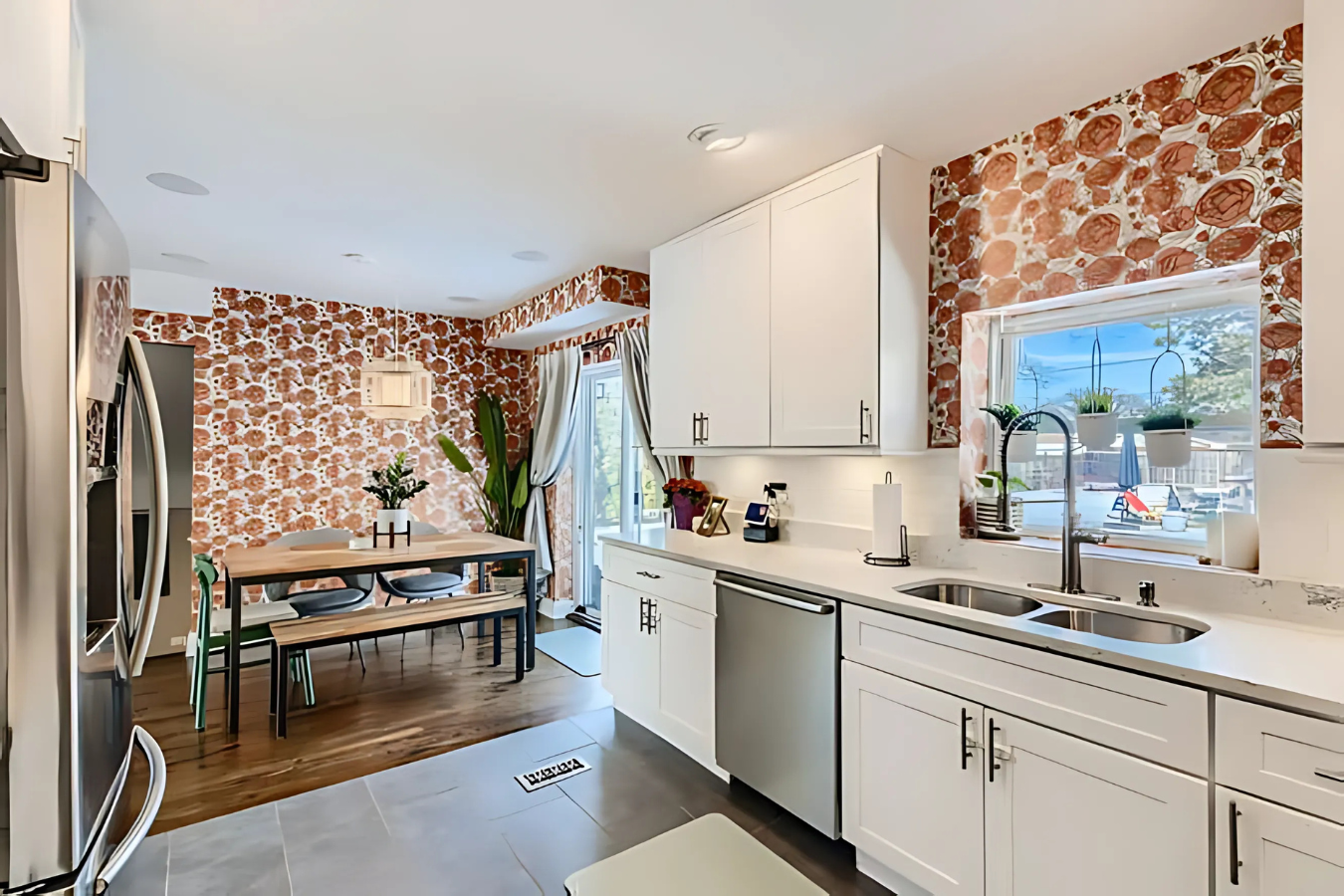 We achieved the homeowners’ vision by combining thoughtful design with high-quality craftsmanship and modern upgrades. To meet their need for additional space and privacy, we added a luxurious master suite on the top floor, complete with a serene office and a spa-inspired bathroom featuring a double sink vanity, a stand-up shower, and a soaking tub. The suite was designed to serve as a private retreat while seamlessly blending with the rest of the home. To enhance functionality and aesthetics throughout the house, we completed a full gut rehab. This included installing new white vinyl windows for energy efficiency, upgrading the electrical, plumbing, and HVAC systems, and adding new insulation to improve comfort and reduce energy costs. The kitchen was transformed into a bright and inviting eat-in space with white shaker cabinets, quartz countertops, stainless steel appliances, and a touch of personality with tile flooring and wallpaper accents. In the basement, we created a cozy and versatile family room, ideal for entertainment and relaxation. The homeowners’ vision of a modern, functional, and elegant home was brought to life by carefully balancing style with practicality, ensuring every detail reflected their lifestyle and future needs.
