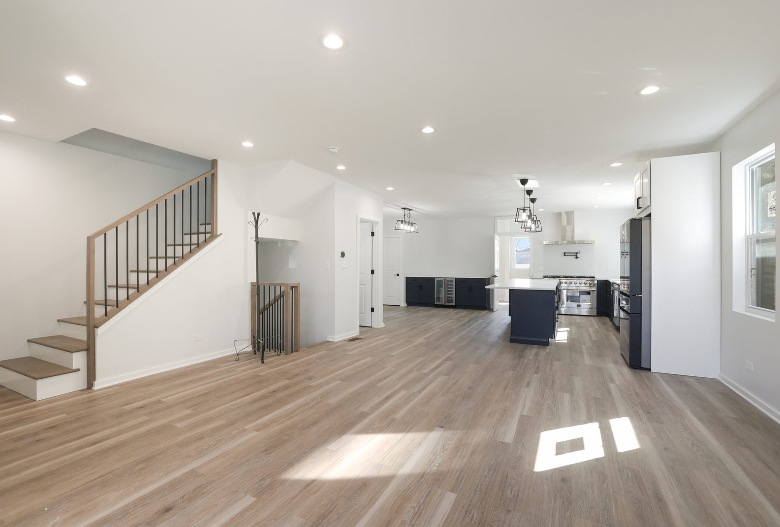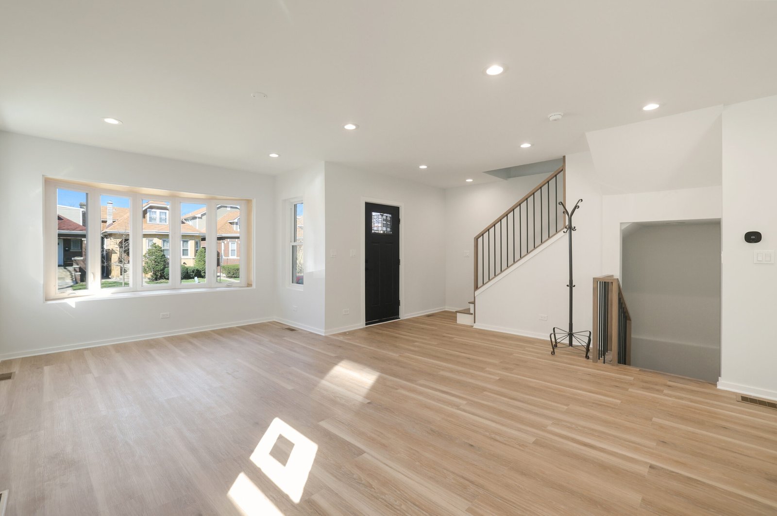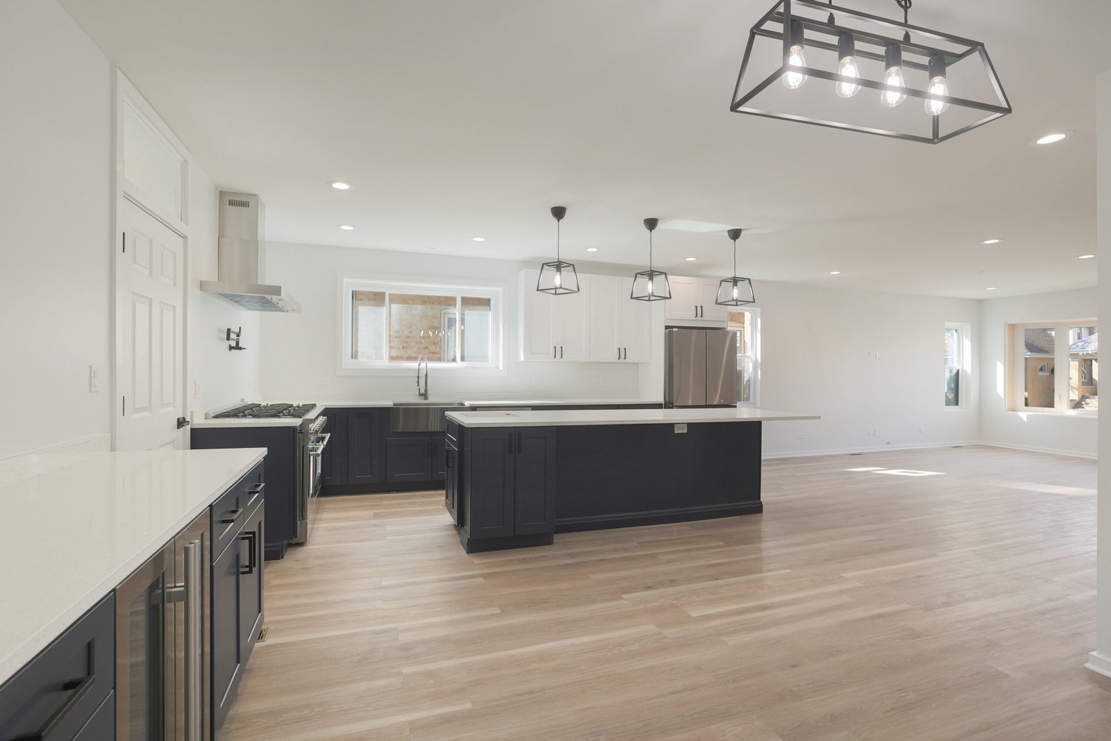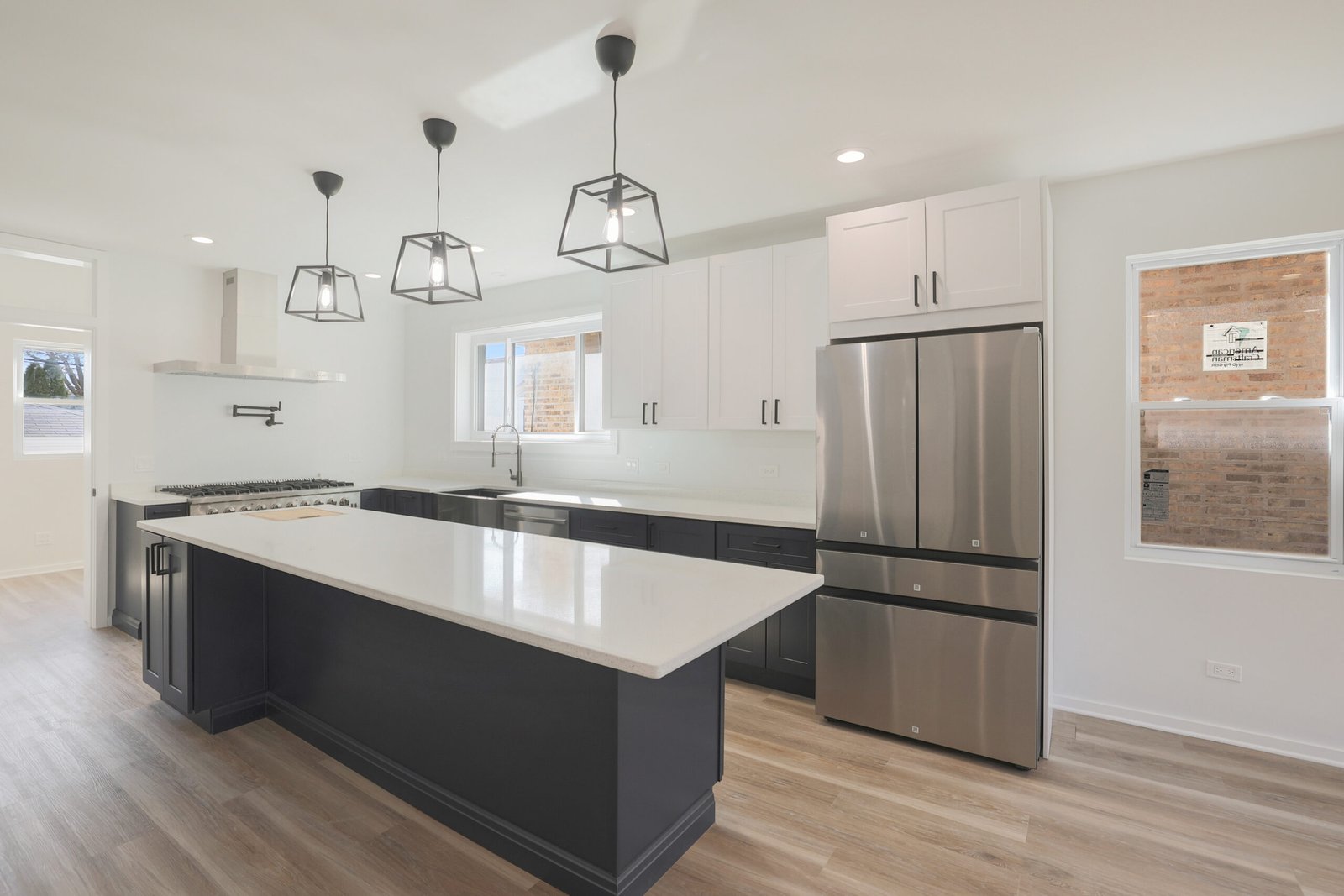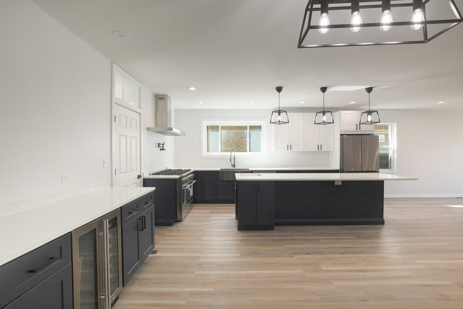 We achieved the homeowners’ vision by starting with a comprehensive plan to transform their Kilbourn Park bungalow into a spacious, modern home. The first step was removing the outdated attic to make way for a full second-floor addition, dramatically increasing the home’s livable space. This allowed us to create four bedrooms and 3.5 bathrooms, including a luxurious master suite, meeting the family’s need for more private and shared spaces. The layout was reconfigured to an open-concept design, ensuring a better flow between living areas, while contemporary design elements, such as hardwood flooring, trace ceilings, and sleek interior doors, elevated the aesthetic.
