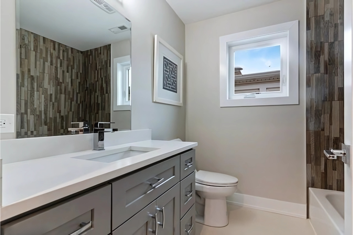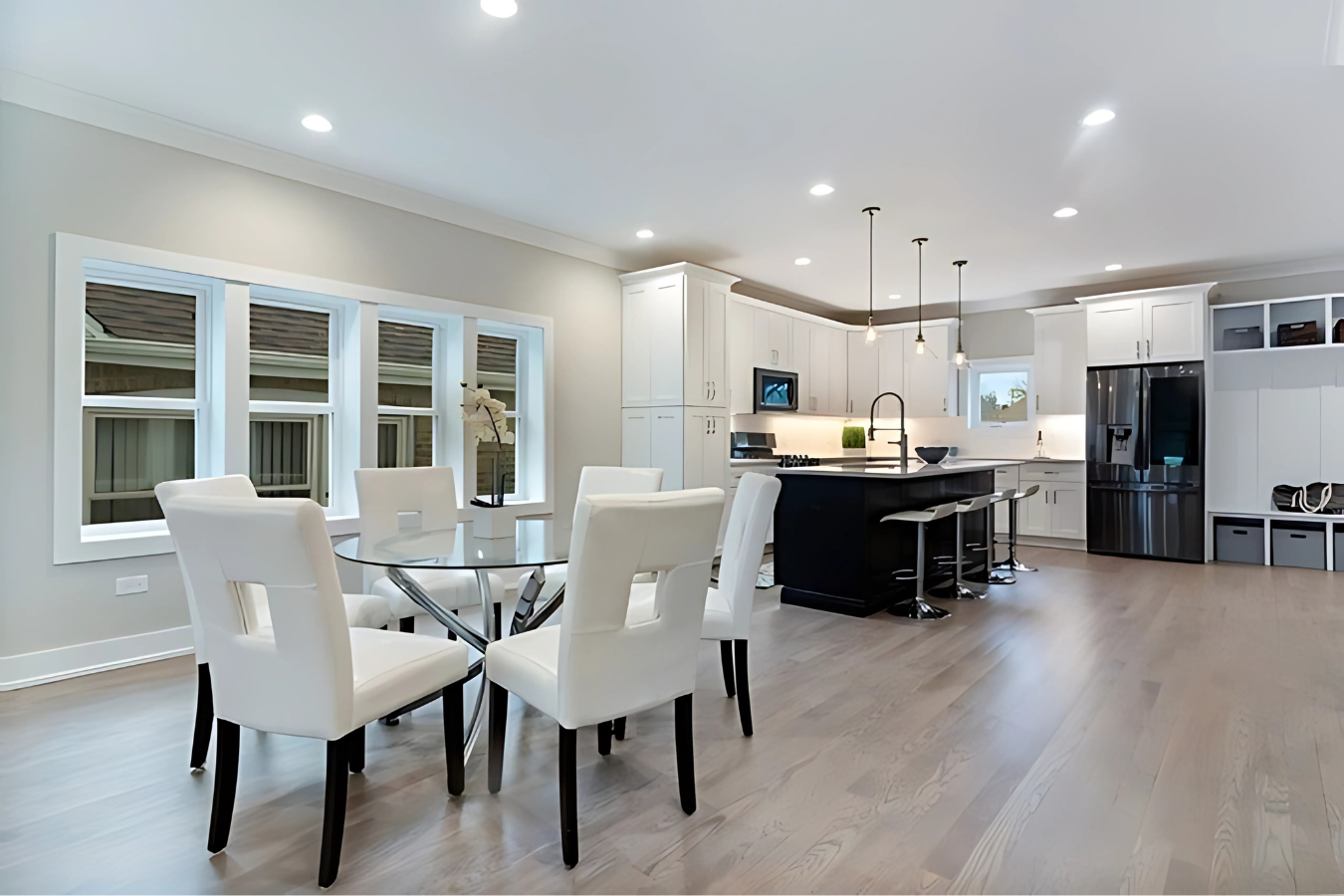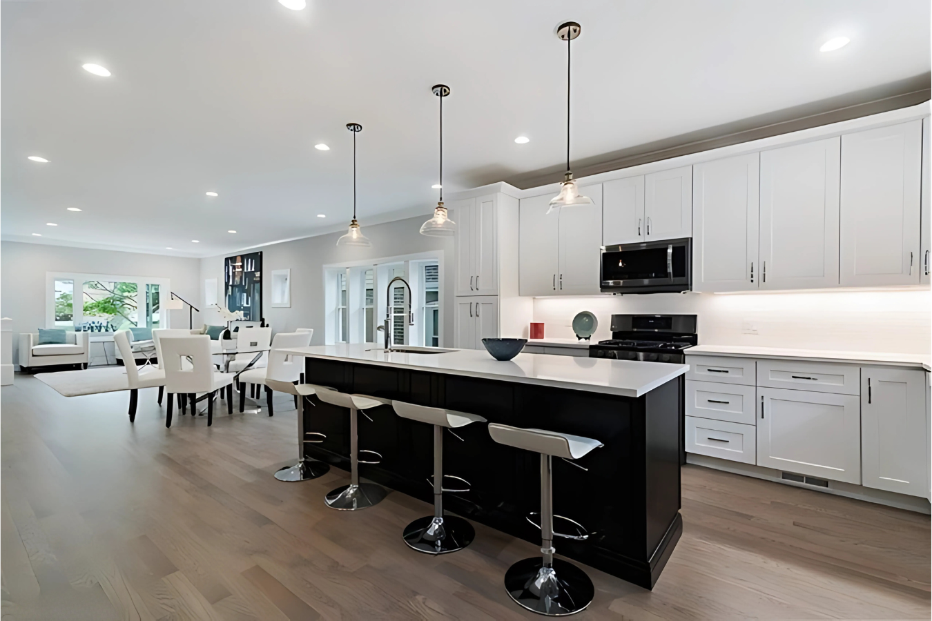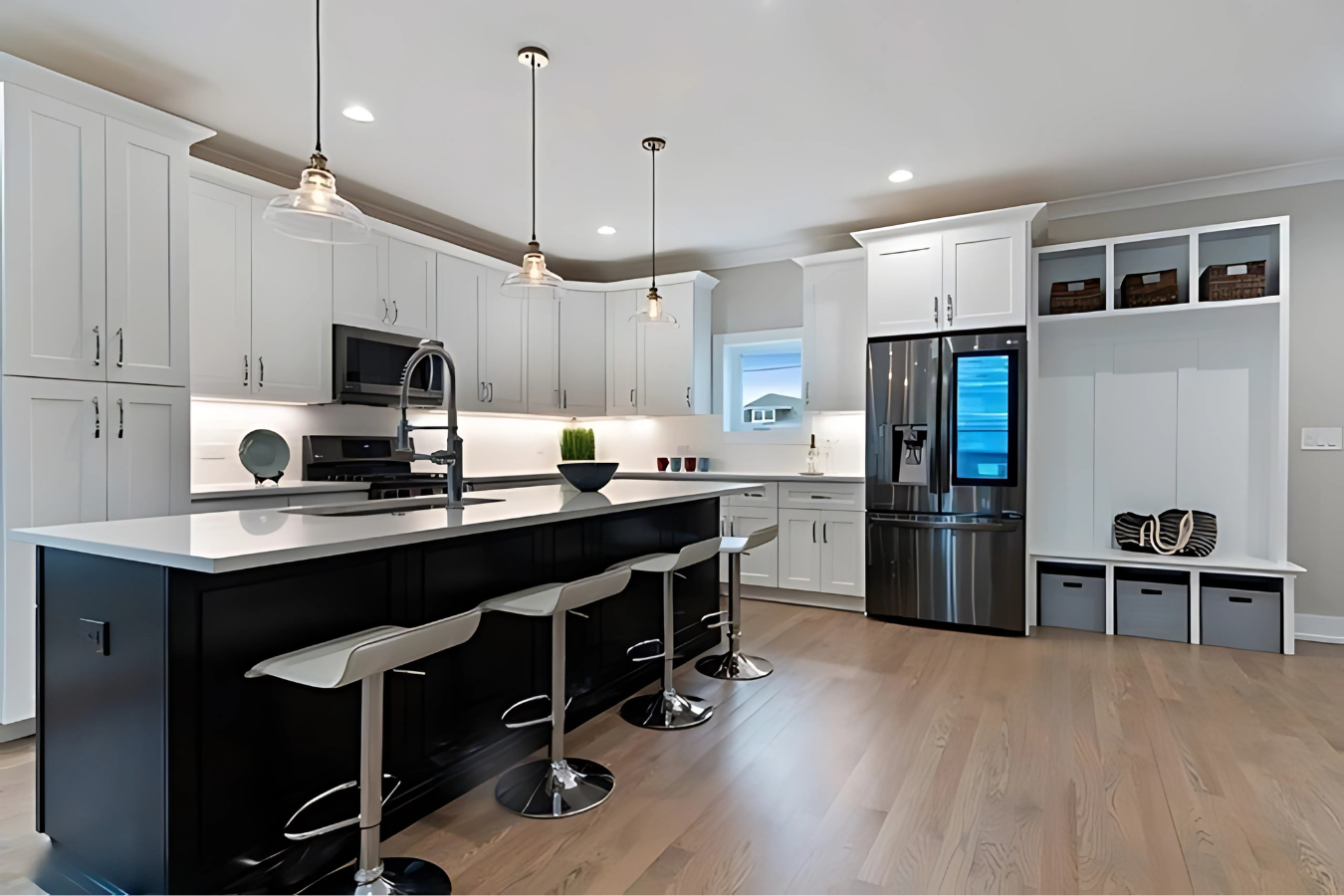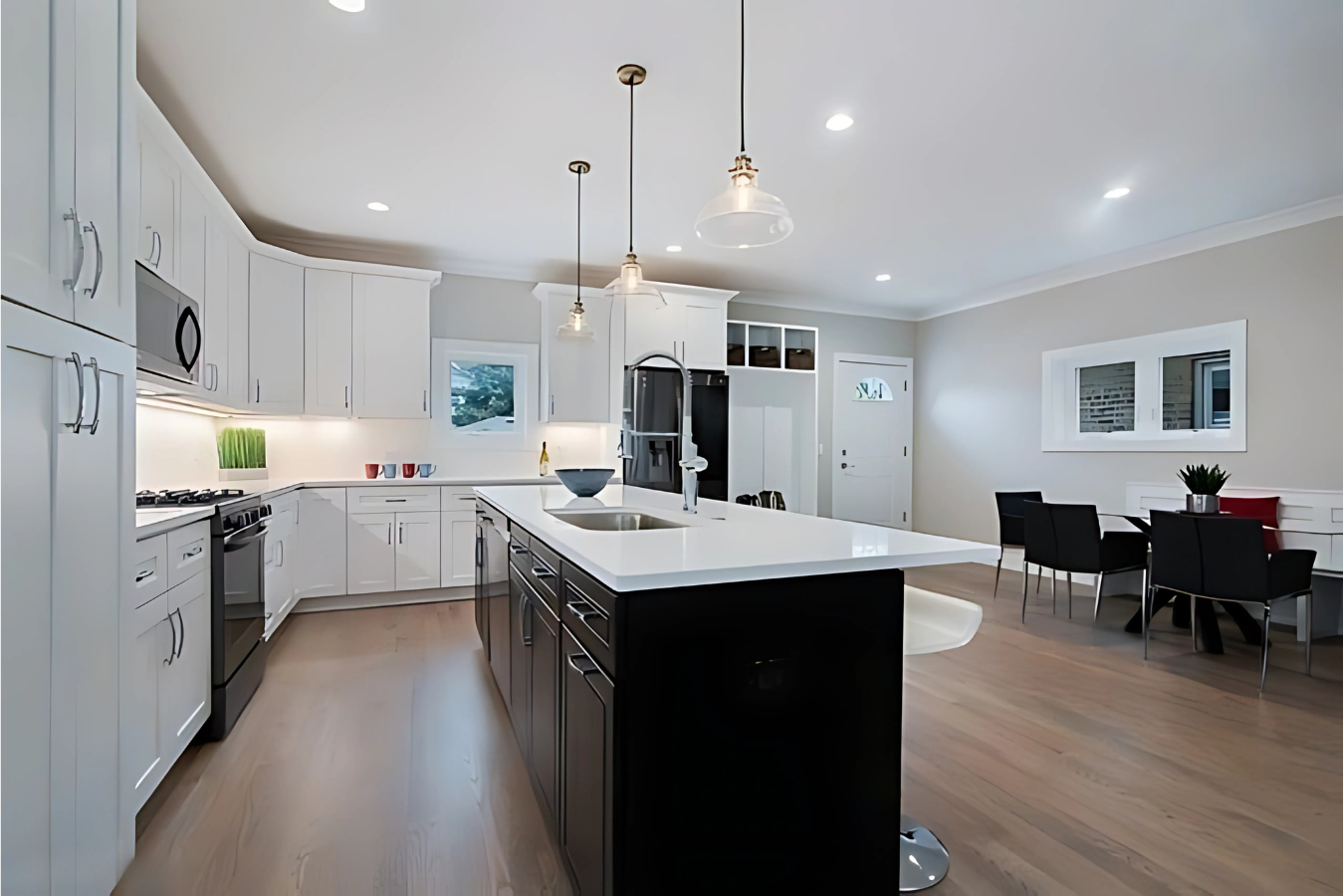 Attention to detail played a vital role in bringing their vision to life. Modern design elements, such as the combination of white siding with black accents and floor-to-ceiling shaker cabinets in the kitchen, added a timeless yet contemporary aesthetic. Installing new systems, including HVAC, plumbing, and electrical, provided the functionality and efficiency required for modern living. By balancing aesthetic upgrades with practical improvements, we delivered a home that not only met but exceeded the homeowners’ expectations, combining elegance with everyday usability.