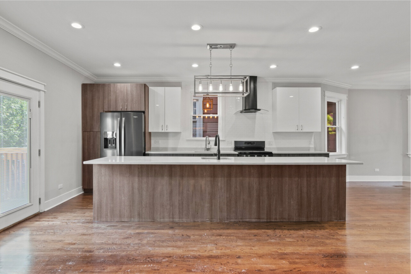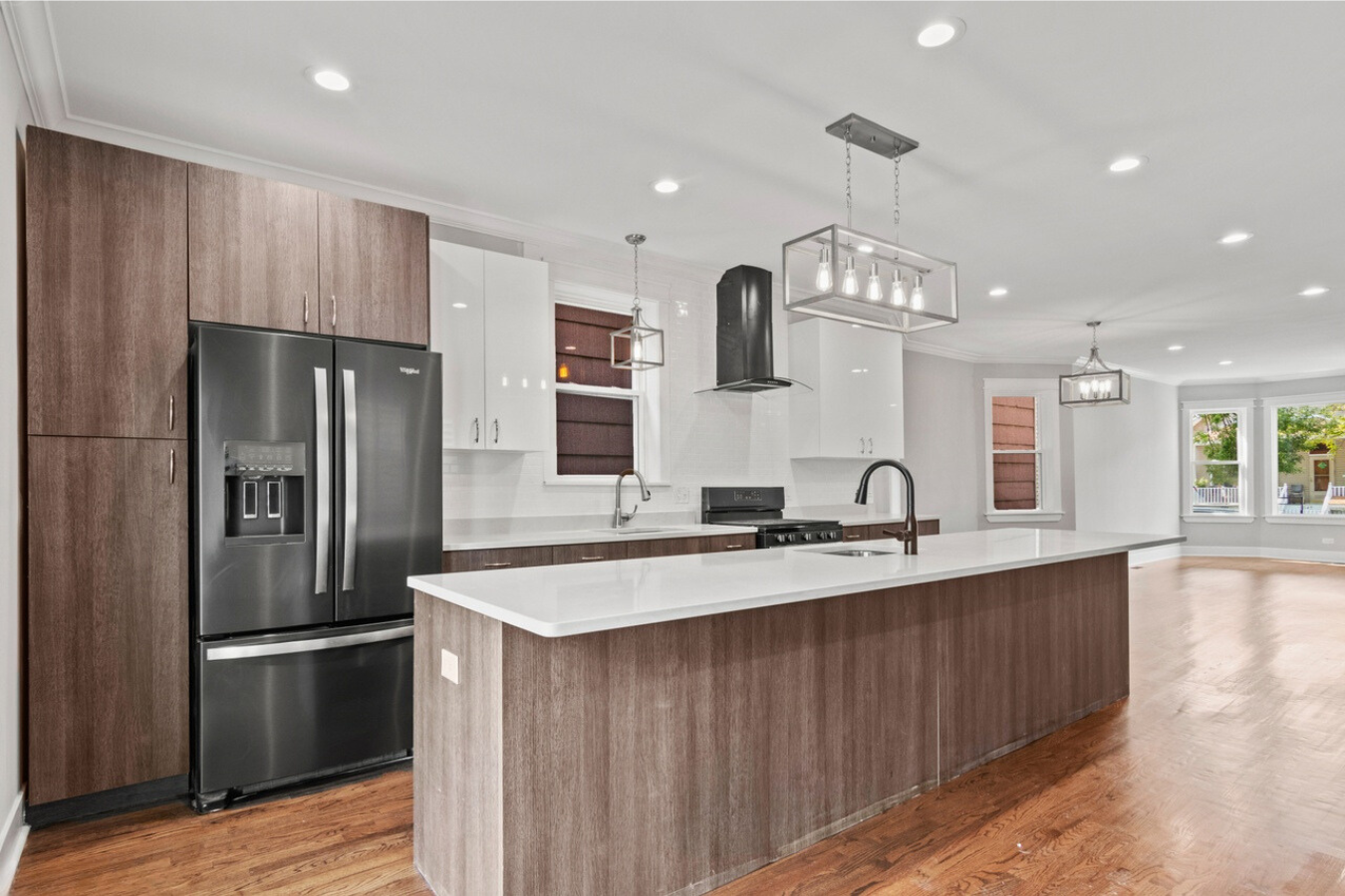 We brought the homeowners’ vision to life by combining expert craftsmanship with thoughtful design to transform this outdated two-flat into a modern, functional single-family home in Logan Square, Chicago. The comprehensive deconversion reconfigured the layout into an open, cohesive space, while sleek European-style cabinets, quartz countertops, and modern fixtures provided a contemporary aesthetic. We enhanced the living spaces with four bedrooms, including a luxurious master suite with a spa-like shower, and 3.5 bathrooms to meet the family’s needs. Upgrading all major systems—electrical, plumbing, HVAC, and insulation—ensured safety, comfort, and efficiency for years to come. Details such as hardwood flooring, two-panel interior doors, and outdoor features like a new front porch and back deck added both character and practicality. By tailoring the design to the urban lot, we optimized every square foot, delivering a stunning modern Cape Cod home that reflects the homeowners’ style and needs in the heart of Logan Square.
