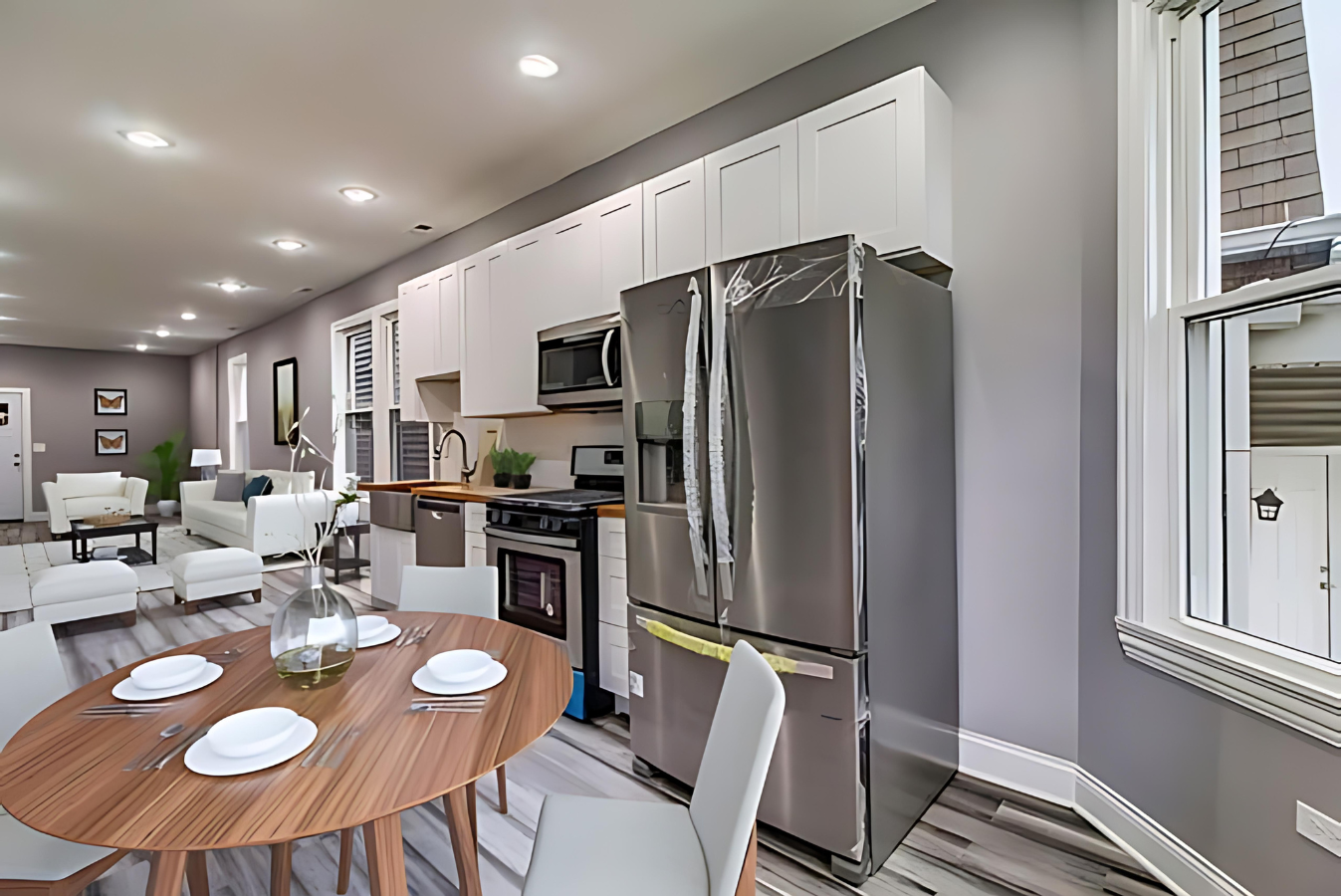 We achieved the homeowners’ vision by starting with a comprehensive gut rehab that allowed us to reimagine the building from the ground up. By focusing on their desire for a modern aesthetic and functional living spaces, we redesigned the interior layouts to embrace an open-concept flow, creating an airy and inviting atmosphere in each unit. Adding a fourth-floor duplex was a key component of the project, giving the property an upscale appeal and additional living space that met the homeowners’ goals for maximizing value and usability. Every detail, from the sleek white shaker cabinets and quartz countertops to the luxurious spa-like master suite, was thoughtfully chosen to reflect contemporary design trends while maintaining practicality.