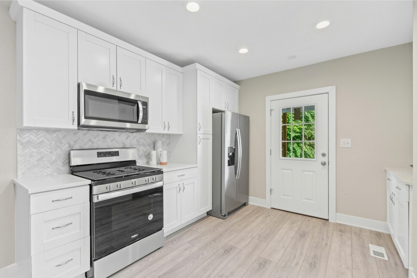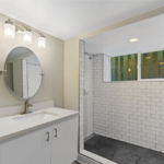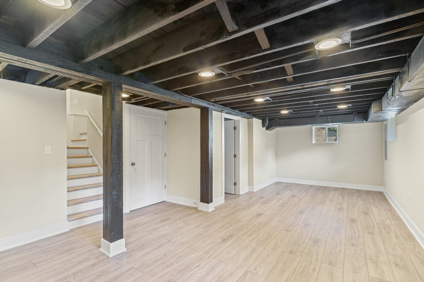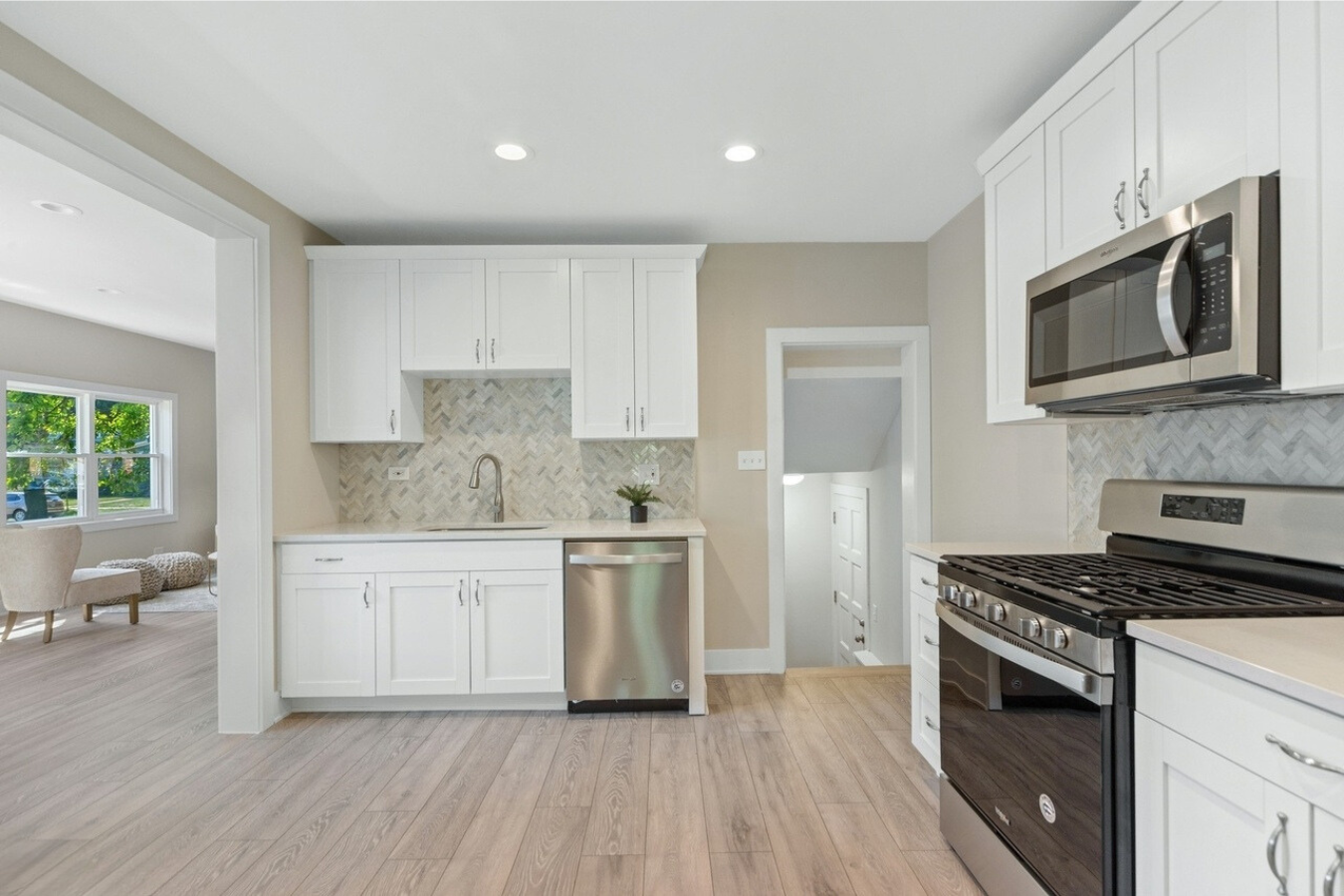 We achieved the homeowners’ vision by blending thoughtful design with expert craftsmanship, ensuring every detail honored the historic charm of their Oak Park 4 Square while introducing modern functionality. In the kitchen, we installed timeless white shaker cabinets, quartz countertops, and stainless steel appliances, paired with elegant tile flooring and wallpaper to reflect the home’s traditional style. We transformed the basement into a private family space with a cozy family room, bathroom, and laundry area.