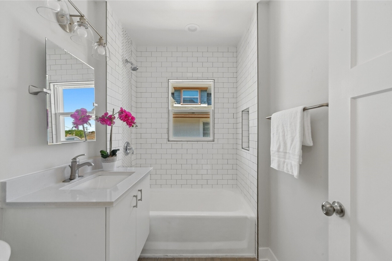To improve the overall home, we added a powder room on the main floor, remodeled the second-floor bathroom, and painted the entire interior to unify the space. Exterior updates, including new siding, roofing, a large concrete patio, and walkways, enhanced both curb appeal and outdoor usability. By addressing longstanding structural issues and prioritizing design continuity, we delivered a stunning remodel that perfectly aligned with the homeowners’ goals.