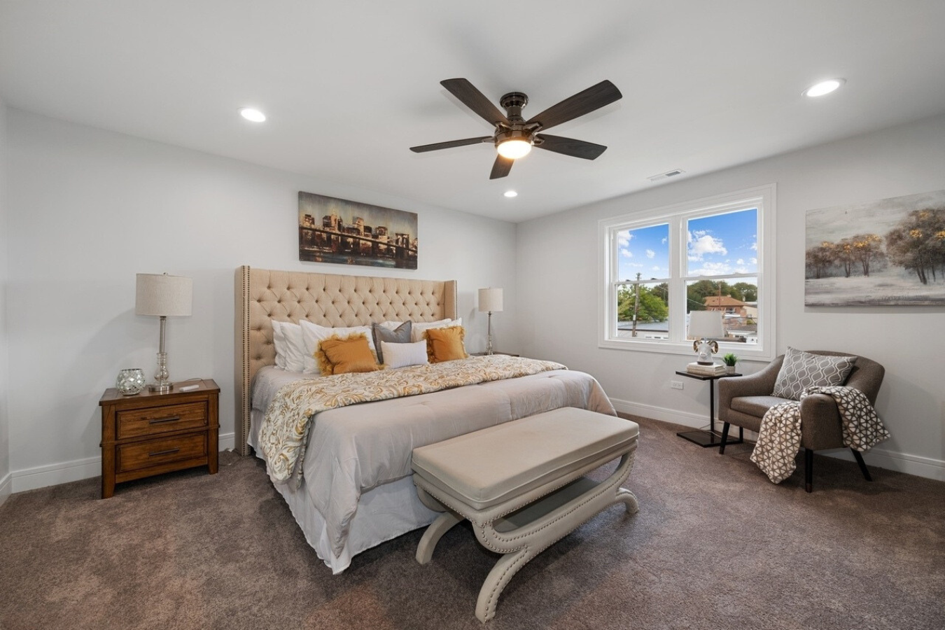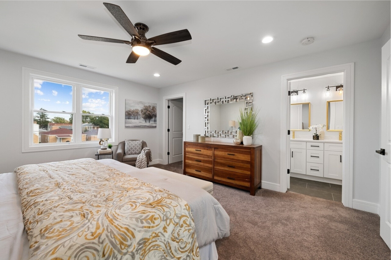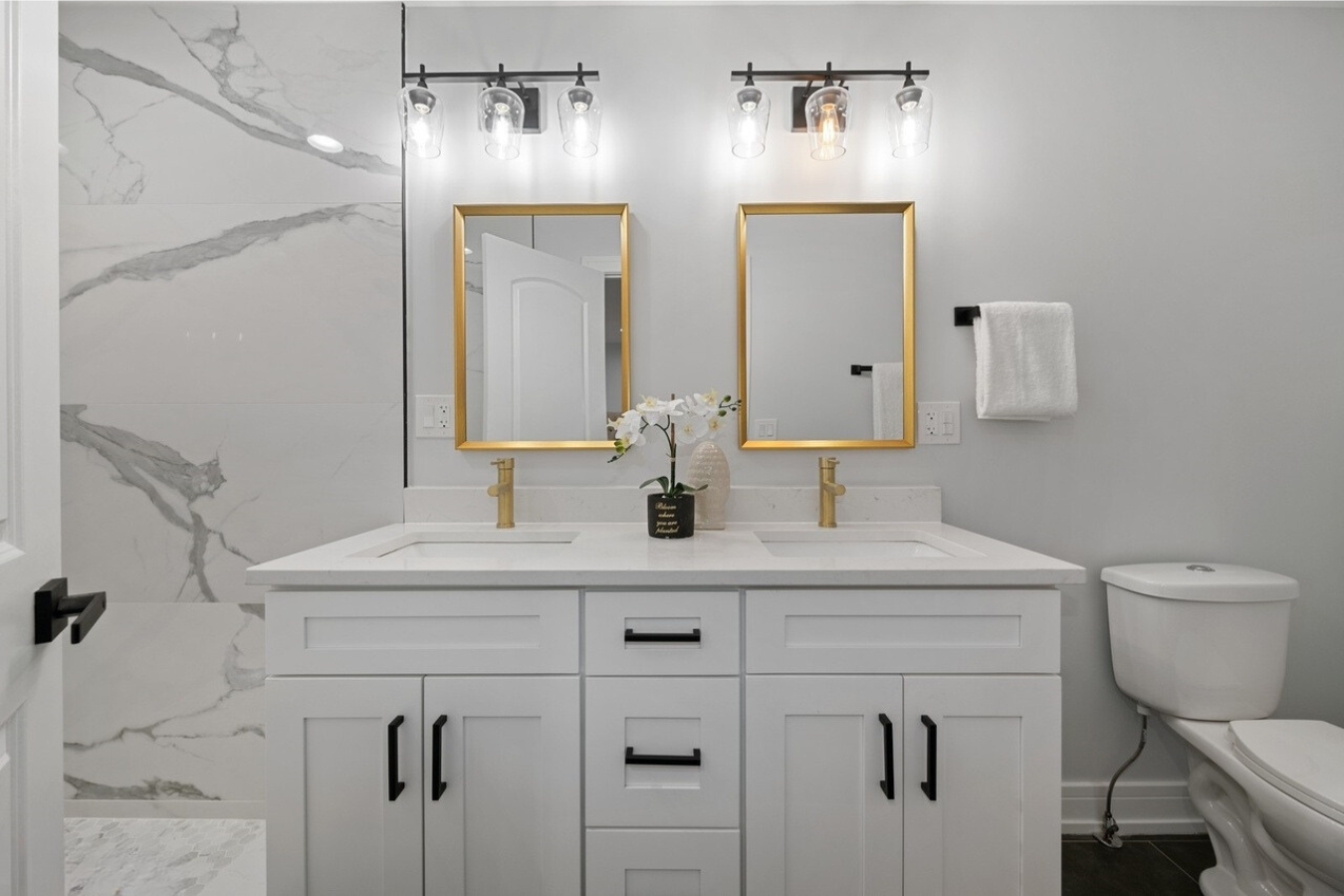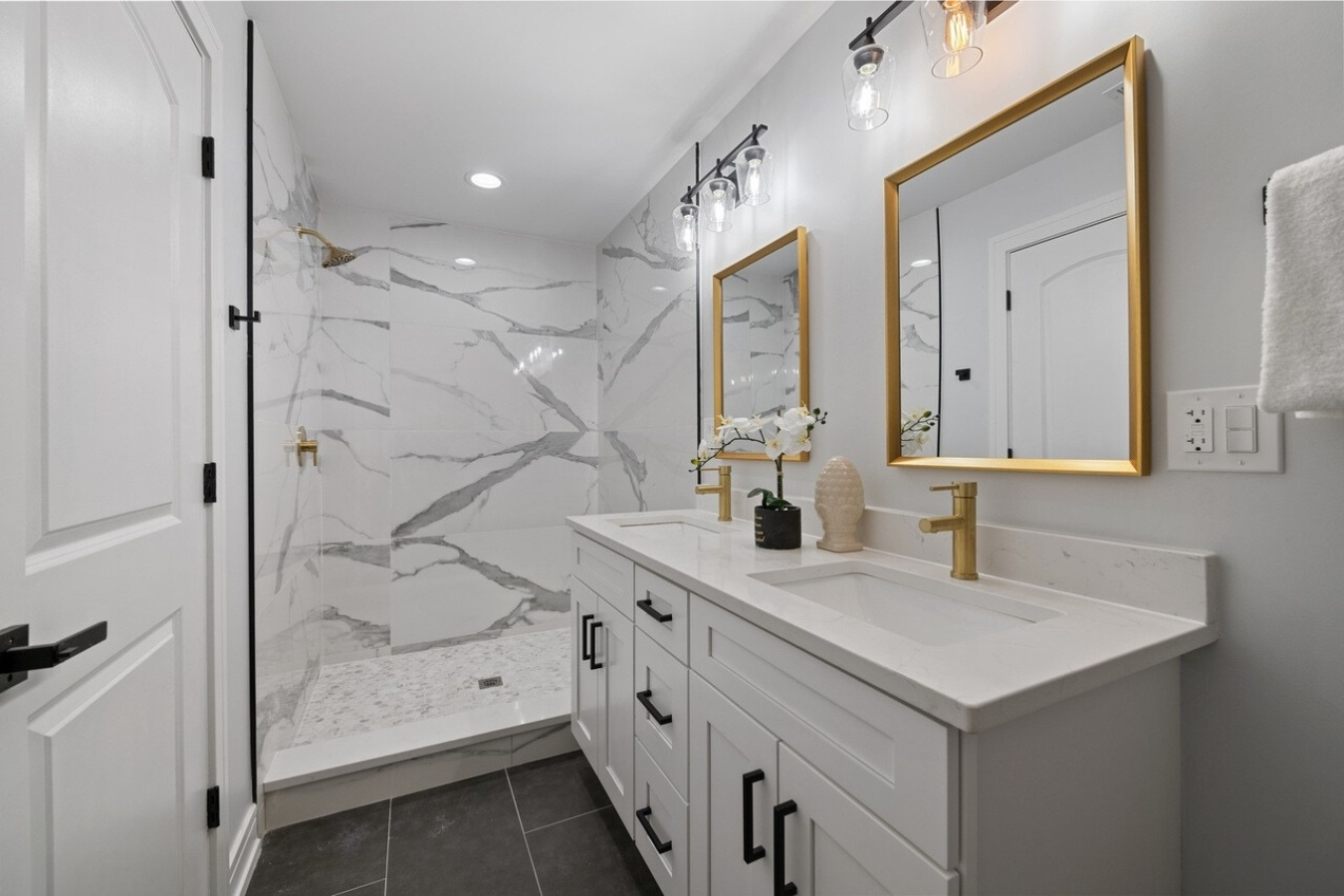 We achieved the homeowners’ vision by combining modern functionality with a design that honors the historic charm of their Jefferson Park, Chicago home. The project began with a complete gut rehab, allowing us to reconfigure the outdated layout into a more open-concept space tailored to their lifestyle. Adding a two-story extension was key to creating the additional square footage needed for their growing family. This thoughtful expansion included four bedrooms, 3.5 bathrooms, and a luxurious master suite, ensuring their space was not only beautiful but also highly functional. Every detail, from the modern kitchen with white shaker cabinets and quartz countertops to the spa-like bathroom with a soaking tub, was carefully selected to reflect the homeowners’ preferences and needs.
